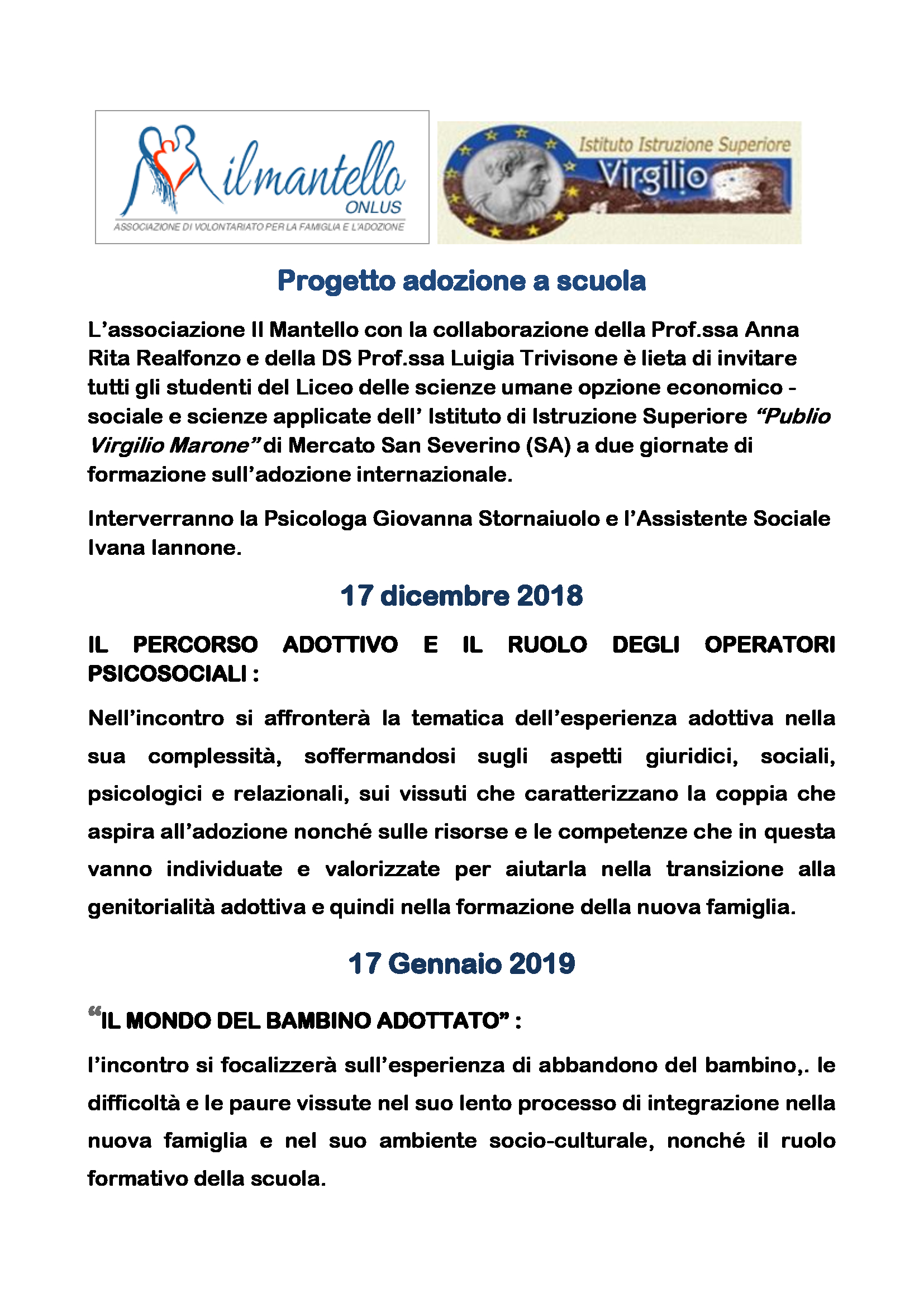 RICHESTA INFORMAZIONI:Progetto Adozione a scuola